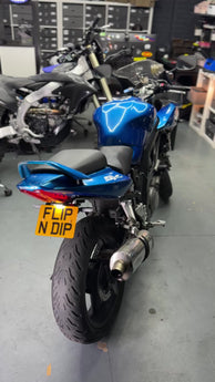 — We recommend a 7x5" plate to avoid the plate catching the wheel. Generally, naked bikes are less forgiving and sportsbike are ok as they have higher tails.