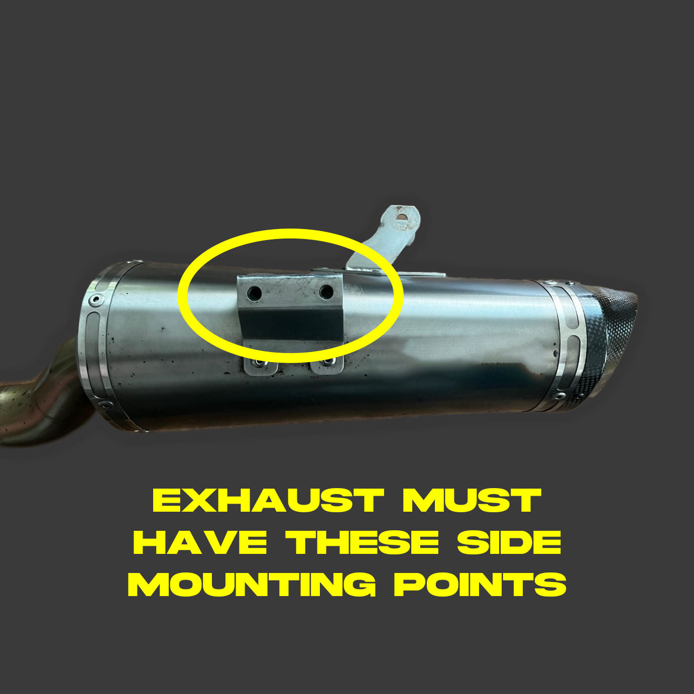 • MUST HAVE SIDE MOUNTING POINTS ON SIDE OF THE EXHUAST